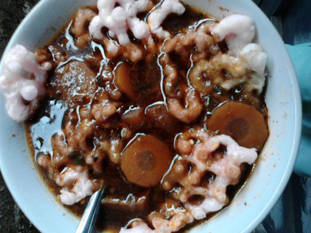 Terbuat dari daging sapi rebus, dengan.